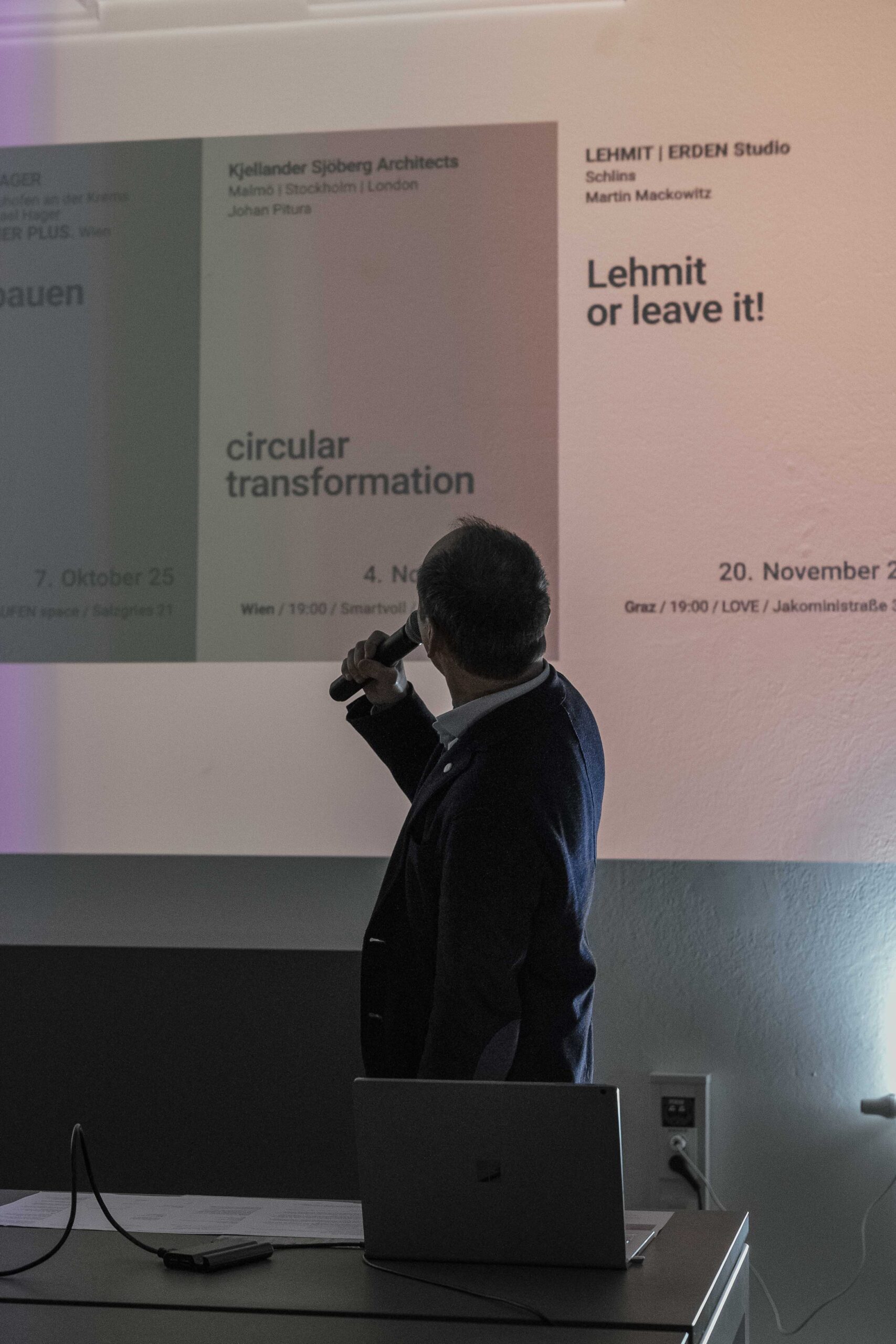 Am 20. November 2025 hielt Martin Mackowitz im Rahmen der Vortragsreihe architektur in progress den Vortrag „Lehmit or leave it?" bei LOVE.